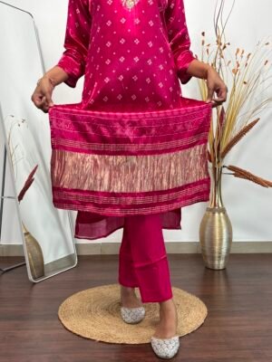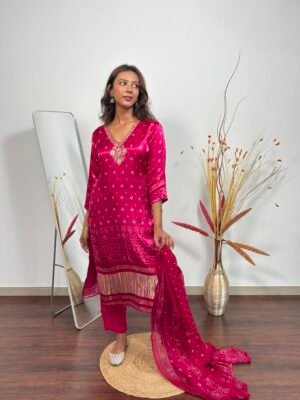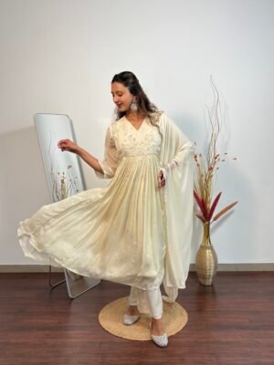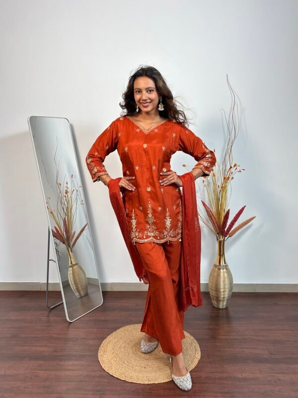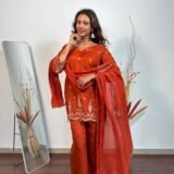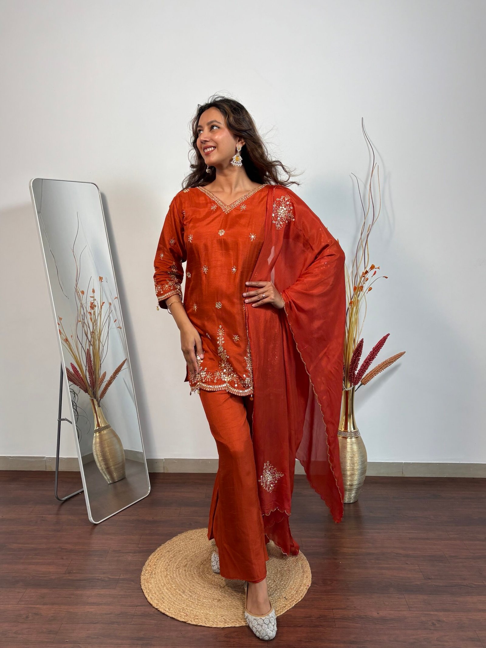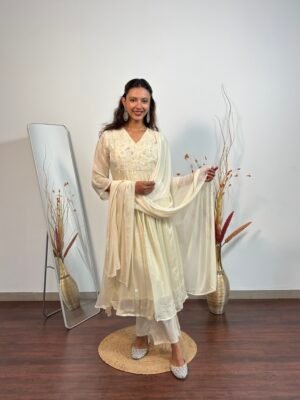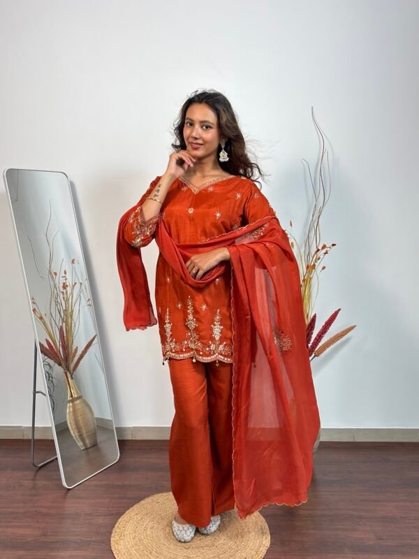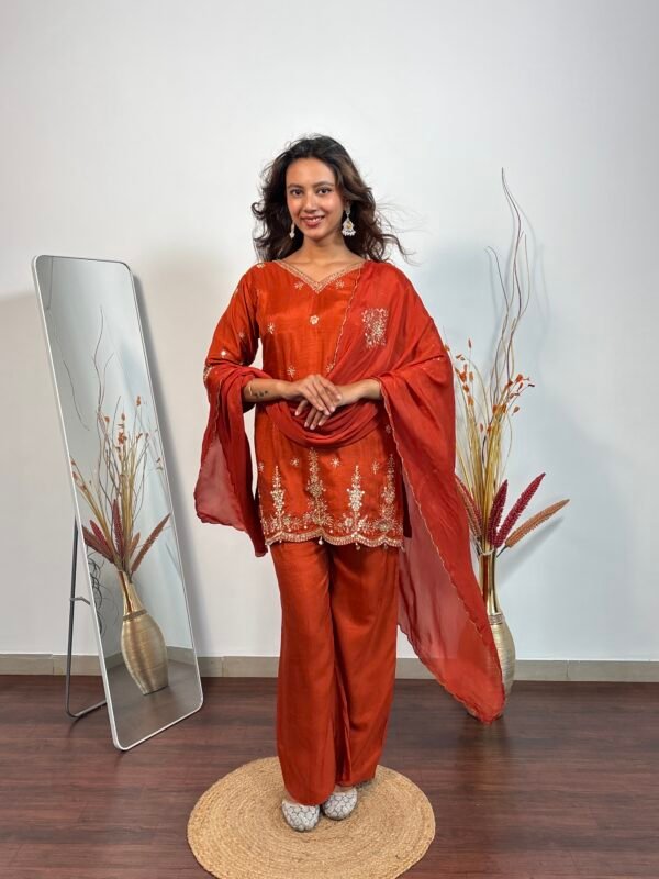 A beautiful mirror work with Moti detailing on the kurta and sleeves. comes with a beautiful handwork dupatta✨