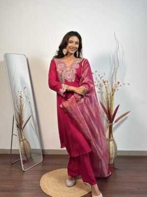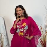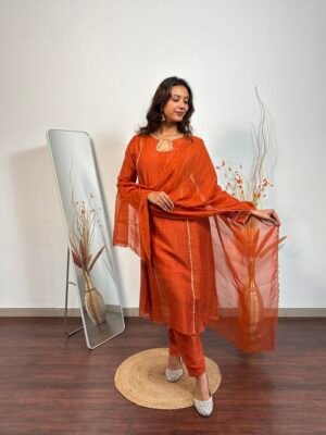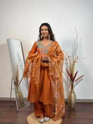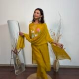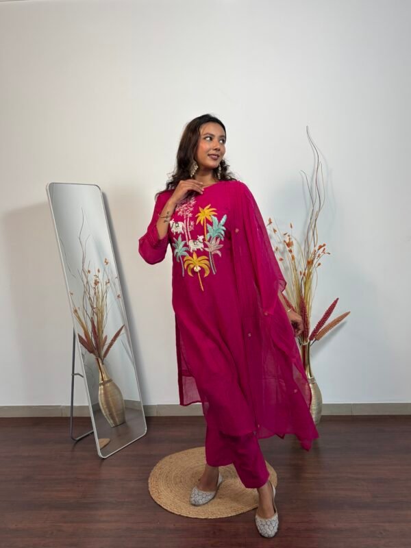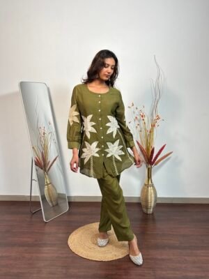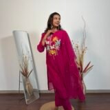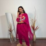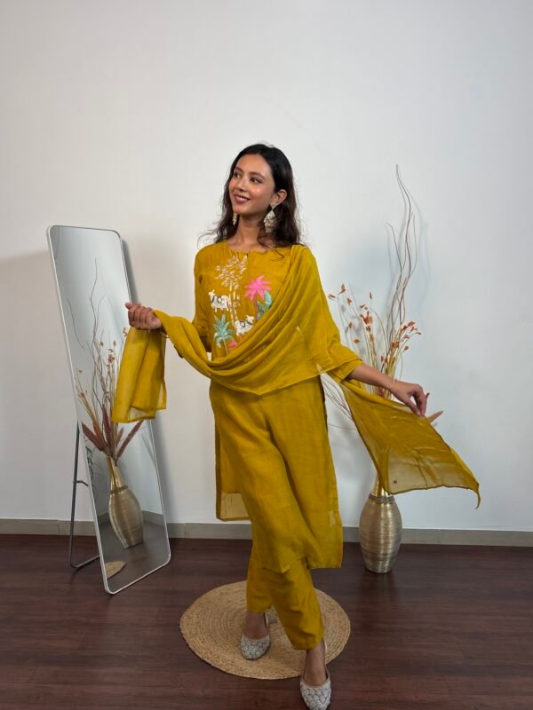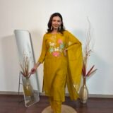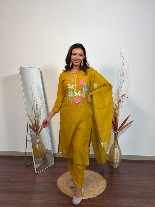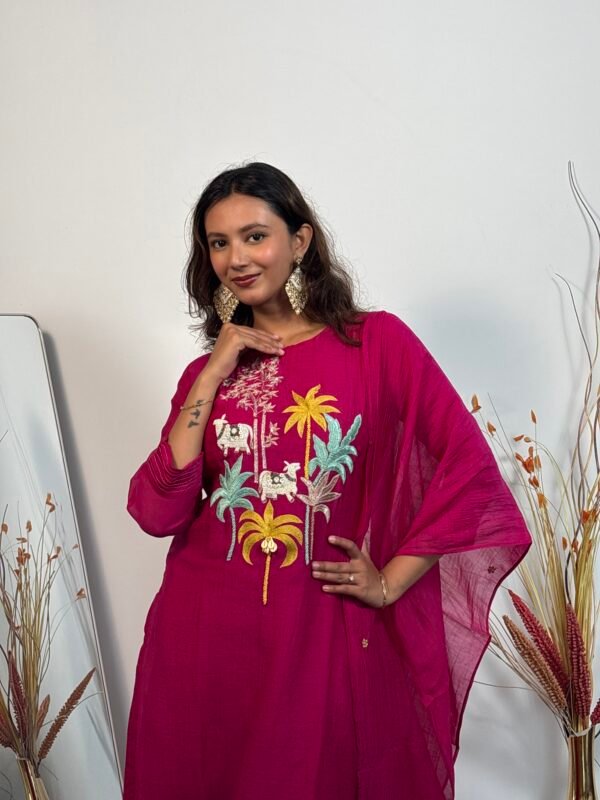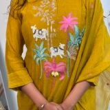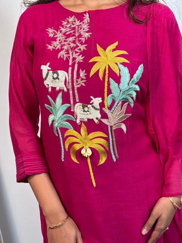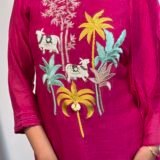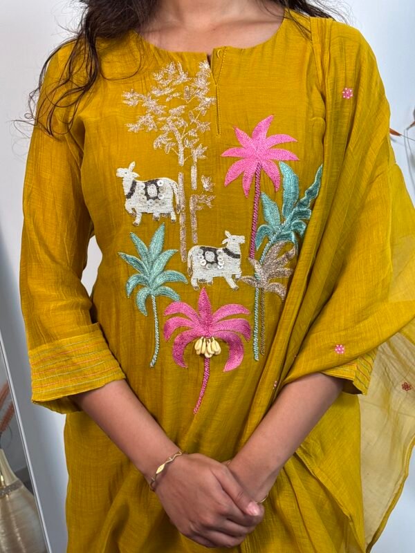 A beautufully done handwork on the kurta, that has a cow which makes it prettier, this one is size inclusive.