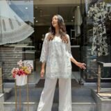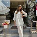 Paired with flowy plazo pants, this set offers a relaxed yet polished silhouette that flatters every body type. The subtle detailing and soothing tones make it ideal for casual outings, festive day wear, or intimate gatherings.