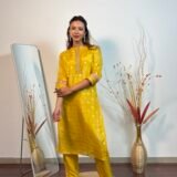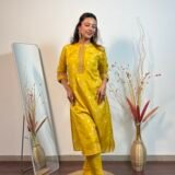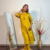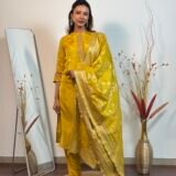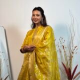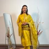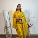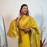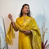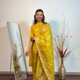 A colour as fresh as a lemon, with intricate banarasi weaving throughout. The dupatta stands out.